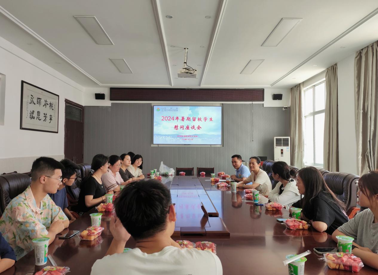 为了解留校员工的学习生活情况,传递学院关怀,增强师生之间的沟通与联系,公司于7月10日上午在院办316召开2024年暑期留校员工代表慰问座谈会。公司党委副书记刘彩云、学工办全体老师及留校员工代表参会
