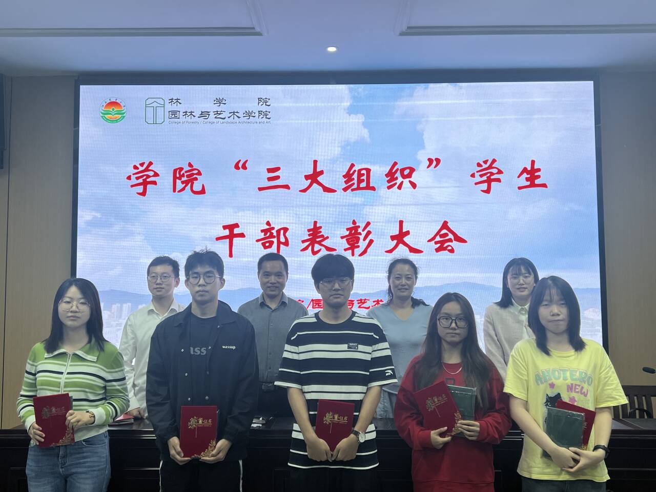 会议伊始,刘彩云表彰员工干部的组织管理能力、运营能力有明显提高,肯定了过去一年里三大组织取得的成绩,并对员工干部们的努力工作表示感谢。同时她也针对员工干部的成长与发展提出了相应的建议与期望,希望员工干部能继续发挥模范带头作用,争做学习上的榜样、工作上的楷模、生活上的标兵,也希望三大组织能紧密团结在一起,积极关心学院建设,在未来工作中携手共进,再创佳绩。随后,刘彩云与学工办老师分别为优秀员工干部颁奖并合影留念。