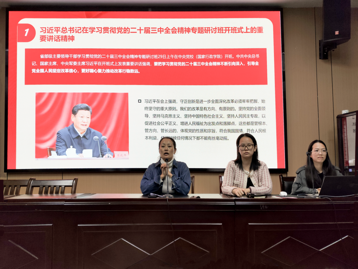 2024年11月11日,PA视讯集团官方网站研究生三支部召开学习贯彻党的二十届三中全会精神专题,会议由党支部书记罗清云主持,公司党委副书记刘彩云出席并讲话。