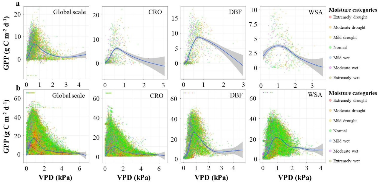 全球尺度上不同陆地生态系统总初级生产力对大气饱和水汽亏缺的响应
