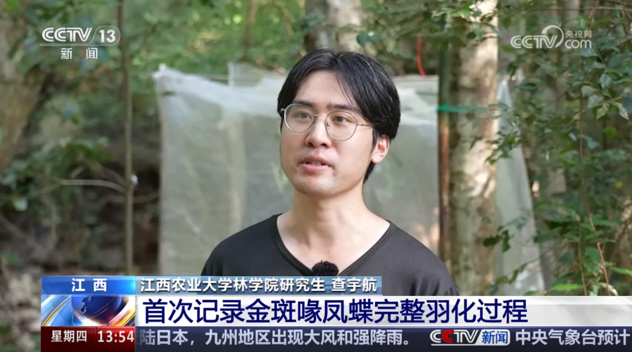 2024年8月27日,公司师生在江西九连山森林生态系国家定位观测研究站(简称九连山生态站)野外首次观测、记录到金斑喙凤蝶雌蝶羽化,跟踪拍摄到羽化、晾翅、展翅、试飞、飞行离开全过程。这次野外观测受到包括央视频道、江西日报等多家媒体报道。